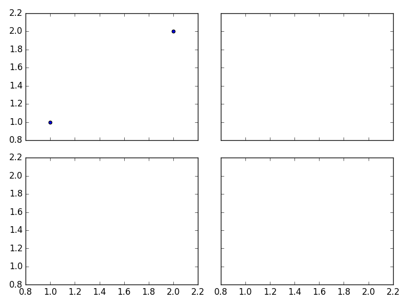 f, ((ax11, ax12), (ax13, ax14)) = plt.subplots(2, 2, sharex=True, sharey=True)
