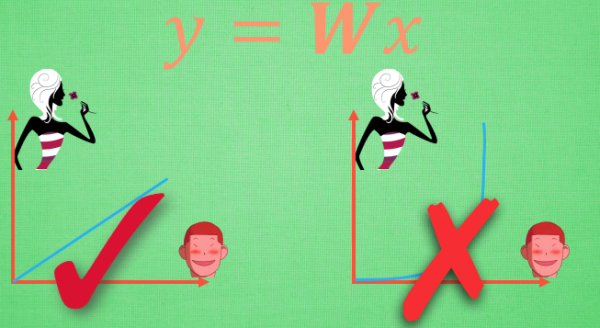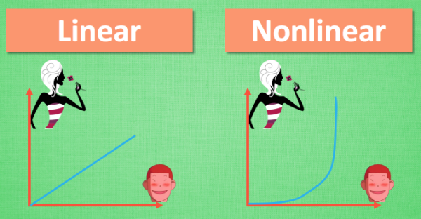 说到线性方程, 我们不得不提到另外一种方程, 非线性方程 (nonlinear function). 我们假设, 女生长得越漂亮, 越多男生爱. 这就可以被当做一个线性问题. 但是如果我们假设这个场景是发生在校园里. 校园里的男生数是有限的, 女生再漂亮, 也不可能会有无穷多的男生喜欢她. 所以这就变成了一个非线性问题.再说..女生也不可能是无穷漂亮的. 这个问题我们以后有时间私下讨论.