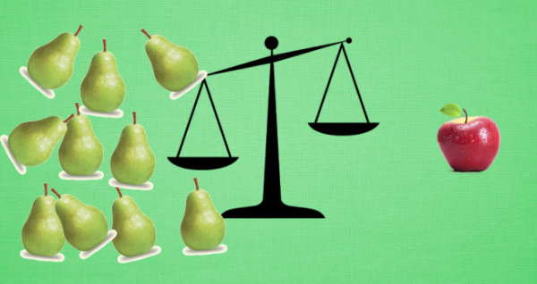 不均衡数据的形式很简单. 这里有苹果和梨, 当你发现你手中的数据对你说, 几乎全世界的人都只吃梨, 如果随便抓一个路人甲, 让你猜他吃苹果还是梨, 正常人都会猜测梨.