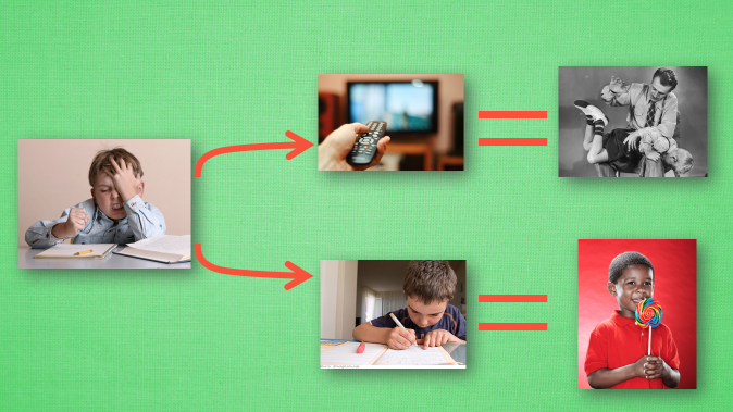 我们做事情都会有一个自己的行为准则, 比如小时候爸妈常说”不写完作业就不准看电视”. 所以我们在 写作业的这种状态下, 好的行为就是继续写作业, 直到写完它, 我们还可以得到奖励, 不好的行为 就是没写完就跑去看电视了, 被爸妈发现, 后果很严重. 小时候这种事情做多了, 也就变成我们不可磨灭的记忆. 这和我们要提到的 Q learning 有什么关系呢? 原来 Q learning 也是一个决策过程, 和小时候的这种情况差不多. 我们举例说明.