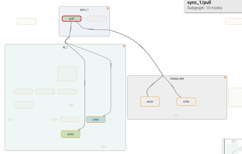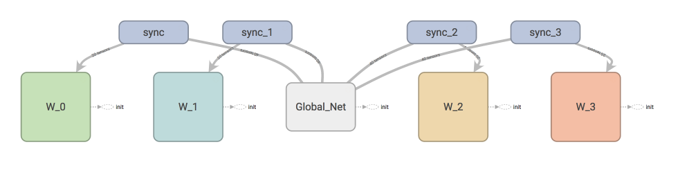 如果我们调用 sync 中的 pull, 这个 worker 就会从 global_net 中获取到最新的参数.
