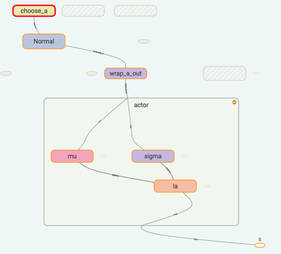 我们用 Tensorflow 搭建神经网络, 对于我们的 Actor, tensorboard 中可以看清晰的看到我们是如果搭建的: