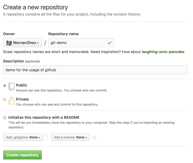 $ git remote add origin https://github.com/MorvanZhou/git-demo.git